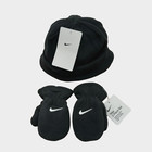 Boys Size 2t-3t Age 1-3y Nike Fleece Winter Trapper Hat & Mittens Set Chin Strap