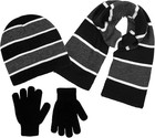 Nike Stripe Boys Size 8-20 Gray Black Warm Winter Beanie Gloves Set