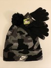 Nike Hat Gloves Set Youth Boys Size 8-20 Beanie Texting Black Gray Camouflage