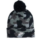 Nike Youth Boys Soft Knit Stretch Pom Beanie Hat & Gloves Set Camo Black Unisex