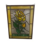 Stained Glass Yellow Rose Suncatcher Window Art Decor13.5x10" Vintage