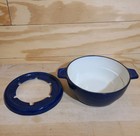 Vintage Le Creuset Blue Enameled Cast Iron Fondue Pot With Lid Htf Cheese Party