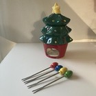 Vintage Christmas Ceramic Tree Fondue Set For 4 Vtg Xmas Multi Purpose Read Desc