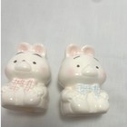 Vintage Bunny Salt & Pepper Shakers Ceramic Pair Red & Blue Bows Made In Taiwan