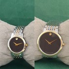 Luxury Movado Couple Pair Quartz Black Dial Great Working Wristwatch Steel Band