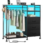 Dresser For Bedroom With Hanging Rack, 3 Drawers Closet With Charging Brown