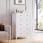 5 Drawer Dresser For Bedroom, White Tall Wooden Dresser ,modern Chest Of Drawers
