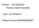 Rheem 42-102342-01 Pressure Switch Assembly Free Ship