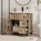 30"rustic Bathroom Vanity: Warm Brown Finish With Ceramic Sink, 4 Drawers & Door