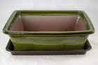 12" Rectangular Moss Green Glazed Cactus & Succulent, Bonsai Planter - Pot/set