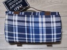 Polo Ralph Lauren Blue Plaid Outdoor Picnic Blanket 47x59 Faux Leather *flaw*