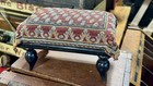 Antique Kilim Upholstered On Foot Stool Heavy, Bun Feet