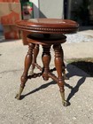 Vintage Adjustable Piano Stool Wooden Seat With Claw Feet Glass Ball