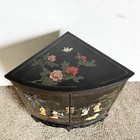 Chinese Black Lacquered And Hand Laminated Demi Lune Cabinet/side Table