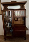 Antique Side By Side Secretary Desk & Book Case W/ Curved Leaded Glass Doors