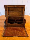 Antique Mahogany English Victorian Stationary Table Top Cabinet/box W/guard Dog