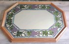 Vintage 1998 Head West Octagon Oak Mirror Stained Glass Style Grapevine Trim 31”