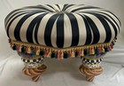 Mackenzie-childs On Wall Street Ottoman Black & Beige W/hand Painted Legs - Nice
