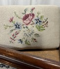 Vintage Needlepoint Footstool Floral Embroidery Wood Legs Oval Small Stool Read