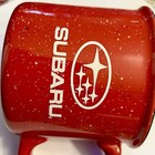 New Subaru Ceramic Campfire Style Coffee Mug Red White W/black Rim Speckled