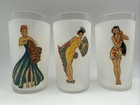 3 1940s Frosted Keyhole Peek-a-boo Decal Pin Up Glasses Barware Nude