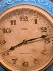 Lecoultre 8 Day Swiss Desk Clock C1910–1925 Blue Enamel Bezel Brass Easel