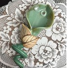 Pottery Barn Green Ceramic Floral Incense Matches Holder Dish Leaf Accent Decor