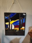 Vintage Framed Stained Glass Window Panel, Desert At Sunset, Stunning 16"×15"