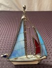 Vintage Stained Glass Sail Boat Suncatcher Red White And Blue Nautical Decor