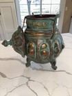 Large Vintage Ornate Metal Urn Planter Jar Amphora W/lid Patina 16” Tall Rustic