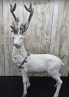Large White Majestic Christmas Reindeer 16.5"x9" Silver Bells Antlers Resin