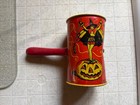 Vtg Litho Tin Halloween Rattle Works Noisemaker Witch Cat Owl T. Cohn 1950 Read