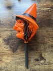 Vintage Bayshore Halloween Blow Mold Orange Witch Noisemaker Rattle Wood Handle