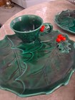 Rare Vintage Homer Laughlin Hudson Set Xmas Plate Cup Saucer Holly Berry Gold 3