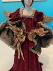Victorian Christmas Angel Tree Topper Ivory Red And Gold Porcelain Face 16” Tall