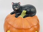 Sakura David Carter Brown Pumpkin Hollow Cookie Jar Black Cat Halloween Vintage