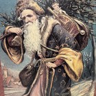 Signed Vintage Tin St Nicholas Santa Framed On Velvet Ornate Frame 14x20"