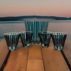 Vtg Carousel By Jeannette Striped Glass Ice Bucket /4 Lowball Glasses Atomic Era
