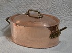 12" Oval French Copper Casserole ~ 8 Lbs Hammered Vintage Pot~tin Lined Stamped