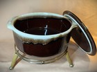 Mcm Pflatzgraff Brown Drip Glaze Covered Fondue Casserole Serving Pot W/ Warmer