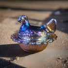 Chocolate Swirl Hen On Nest Chicken Salt Dish, Depression Style Glass, Vintage