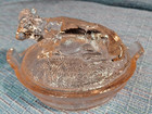Vintage Pink Clear Depression Pressed Glass Cow On A Nest Bowl And Lid