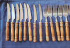 48 Pc Vtg Mcm Wood Handle Stainless Flatware Set Old Homestead Spoon Fork Knife