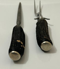 Vtg Carving Set Stag Faux Horn Black Handle 2pc Set Fork Honer Stainless Steel