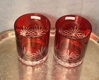 Vintage Czech Bohemian Glasses Cut Crystal Ruby Red Pinwheel Star, Qty 12