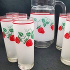 Vintage Strawberry Frosted Pitcher & 8 Glasses Teleflora 1983 Made In France