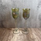 Vtg Signed Charlie Miner Tesuque Glassworks Art Wine Goblets Pair Iridescent