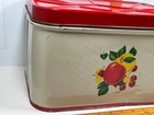 Vintage Metal Bread Box Apple Cherry Cherries Leave Flowers Red White Bread Box