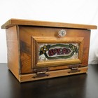 Wooden Bread Box Wheat Carving On Door- Vtg