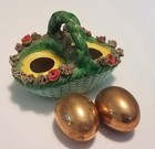 Vintage Salt And Pepper Shakers Floral Basket With Gold Golden Eggs Ceramic Old